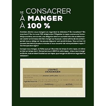 70 recettes pour adopter un mode de vie plus sain en suivant les principes du régime Okinawa. Un accompagnement pratique par un diététicien-nutritionnisteInspirez-vous des habitudes alimentaires des habitants de cette île du Japon, réputés pour leur incroyable longévité.Conçu comme une véritable ligne de conduite nutritionnelle avec l’objectif de s’inscrire dans la durée, il permet de rester mince et de vieillir en bonne santé.les fiches techniques de cet ouvrage vous donneront toutes les clés pour vous y mettre.Apprenez également à composer des repas équilibrés et plein de saveurs : Bento végétarien, Filet de porc vapeur au sésame noir, Tartare de daurade aux algues et au citron vert, Nouilles froide aux okras, Taro et courge mijotés au miso, Salade de poulpe au concombre, Epinards au tofu frit, Thé vert ...