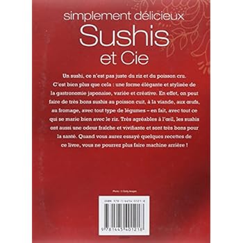 Un sushi, ce n'est pas juste du riz et du poisson cru. C'est bien plus que cela : une forme élégante et stylisée de la gastronomie japonaise, variée et créative. En effet, on peut faire de très bons sushis au poisson cuit, à la viande, aux oeufs, au fromage, avec tout type de légumes - en fait, avec tout ce qui se marie bien avec le riz. Très agréables à l'oeil, les sushis ont aussi une odeur fraîche et vivifiante et sont très bons pour la santé. Quand vous aurez essayé quelques recettes de ce livre, vous ne pourrez plus faire machine arrière !